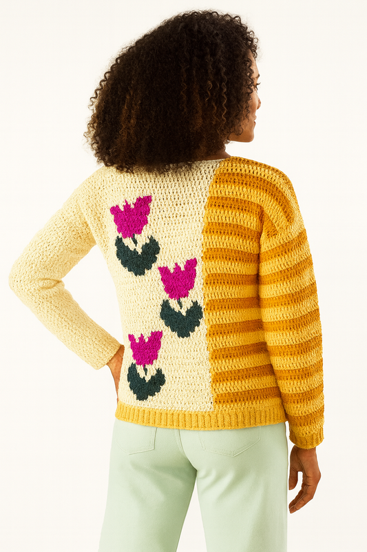 Tulips in Bloom Sweater Crochet Pattern PDF, Floral Intarsia Pullover