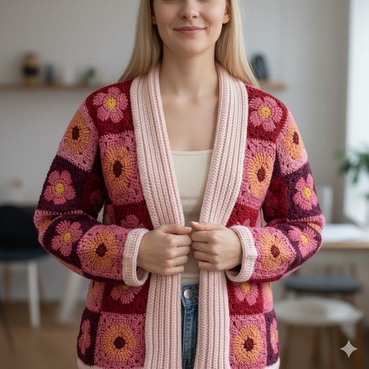 Crochet Cozy Posies Granny Cardigan Pattern, XS/S/M