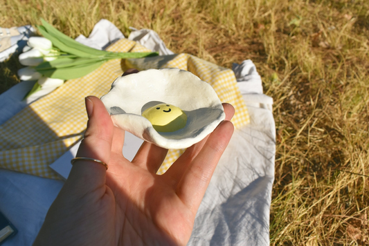 Egg clay dish - Clay ring dish egg plate , Jewelry trinket tray bowl , Sunny side up ring holder
