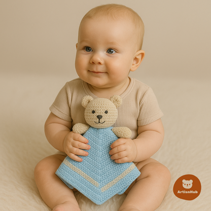 Crochet Bear Lovey Pattern PDF, Baby Comforter Blanket, Amigurumi Teddy Security Blanket Digital Download