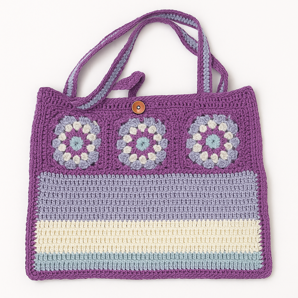 Carry your essentials in style with our Dulcan Tote Crochet Pattern PDF – a granny square, color-block market bag that’s perfect for everyday use. This easy beginner crochet pattern guides you step-by-step to create a sturdy and reusable tote, ideal for shopping trips, beach days, or casual outings.