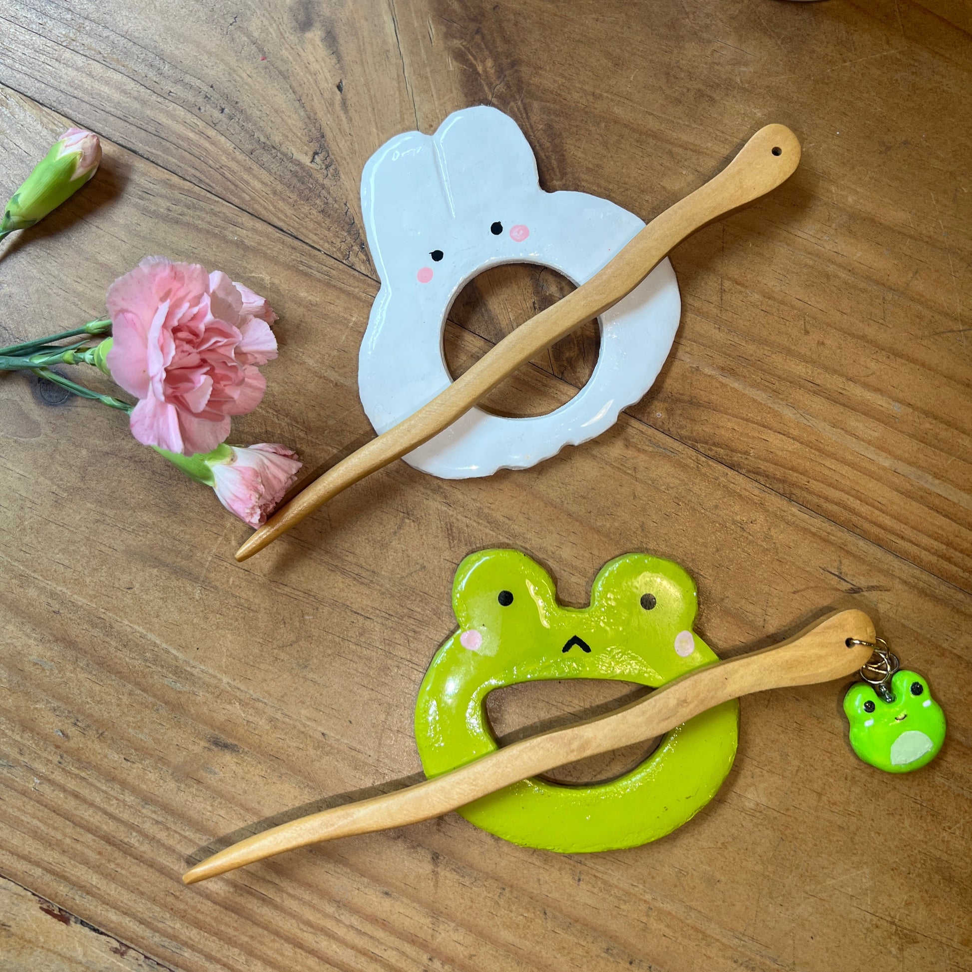 Add a touch of whimsy and elegance to your hair with these cute, handmade clay hair accessories! Perfect for everyday wear or special occasions.