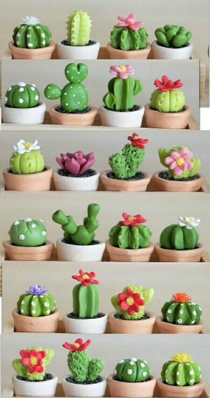 This product set features an adorable collection of handcrafted miniature cactus figurines, each placed in a tiny plant pot. Designed with vibrant colors and playful details, every cactus has a unique shape and personality, making them perfect for display or as thoughtful gifts.
