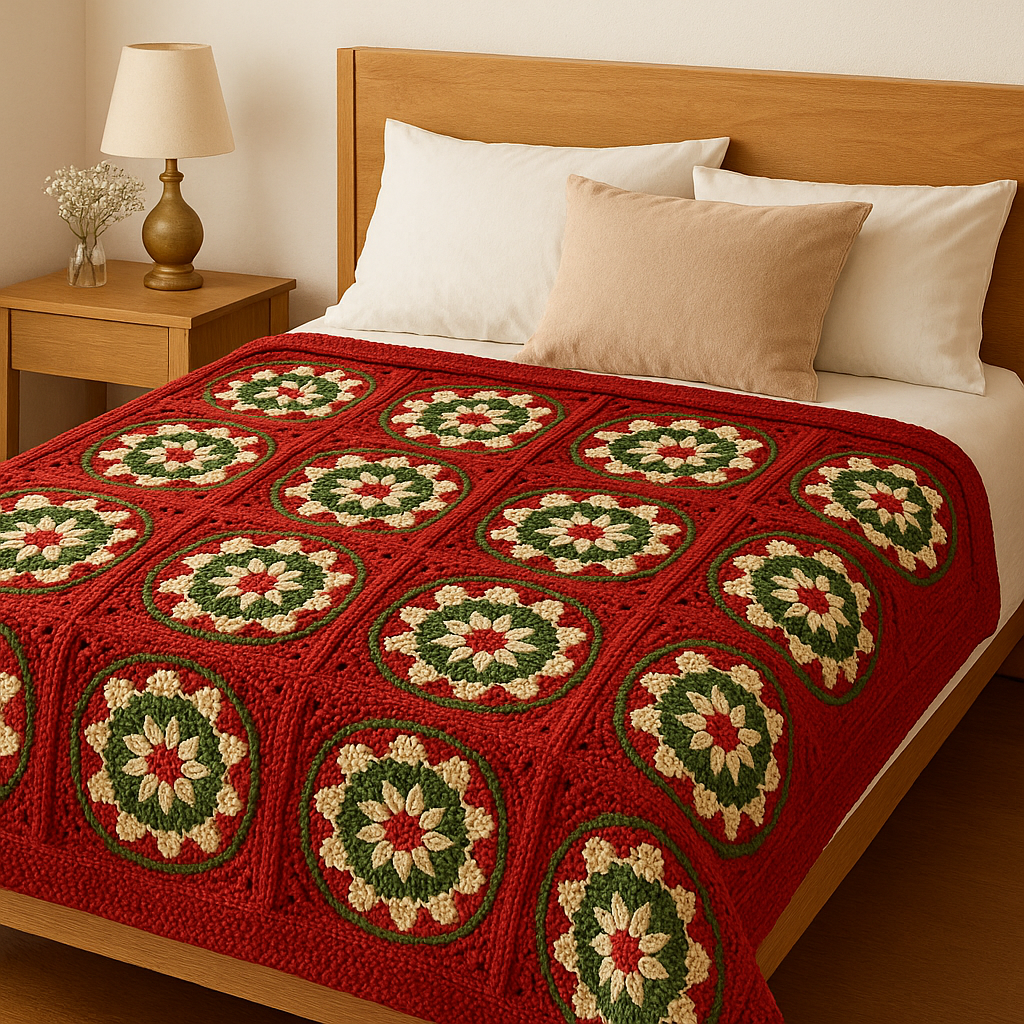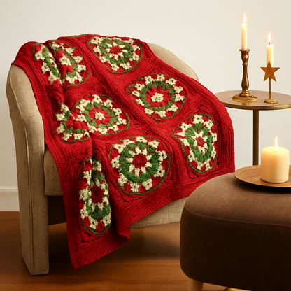 Create your own cozy and festive crochet blanket with this easy-to-follow PDF pattern. Designed with a beautiful Christmas-inspired granny square motif in red, green, and cream, this crochet pattern is perfect for holiday décor, gift-making, or adding a handmade touch to your home.