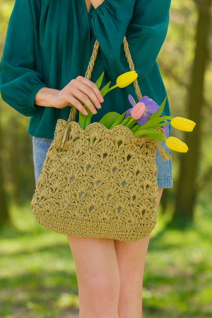 Sand Dune Satchel Crochet Pattern PDF, Shell Stitch Raffia Tote Bag