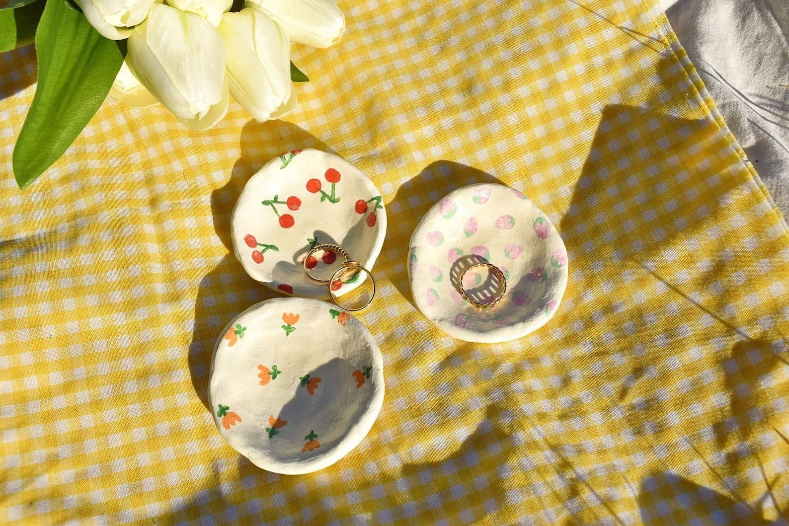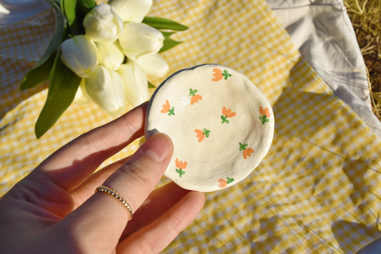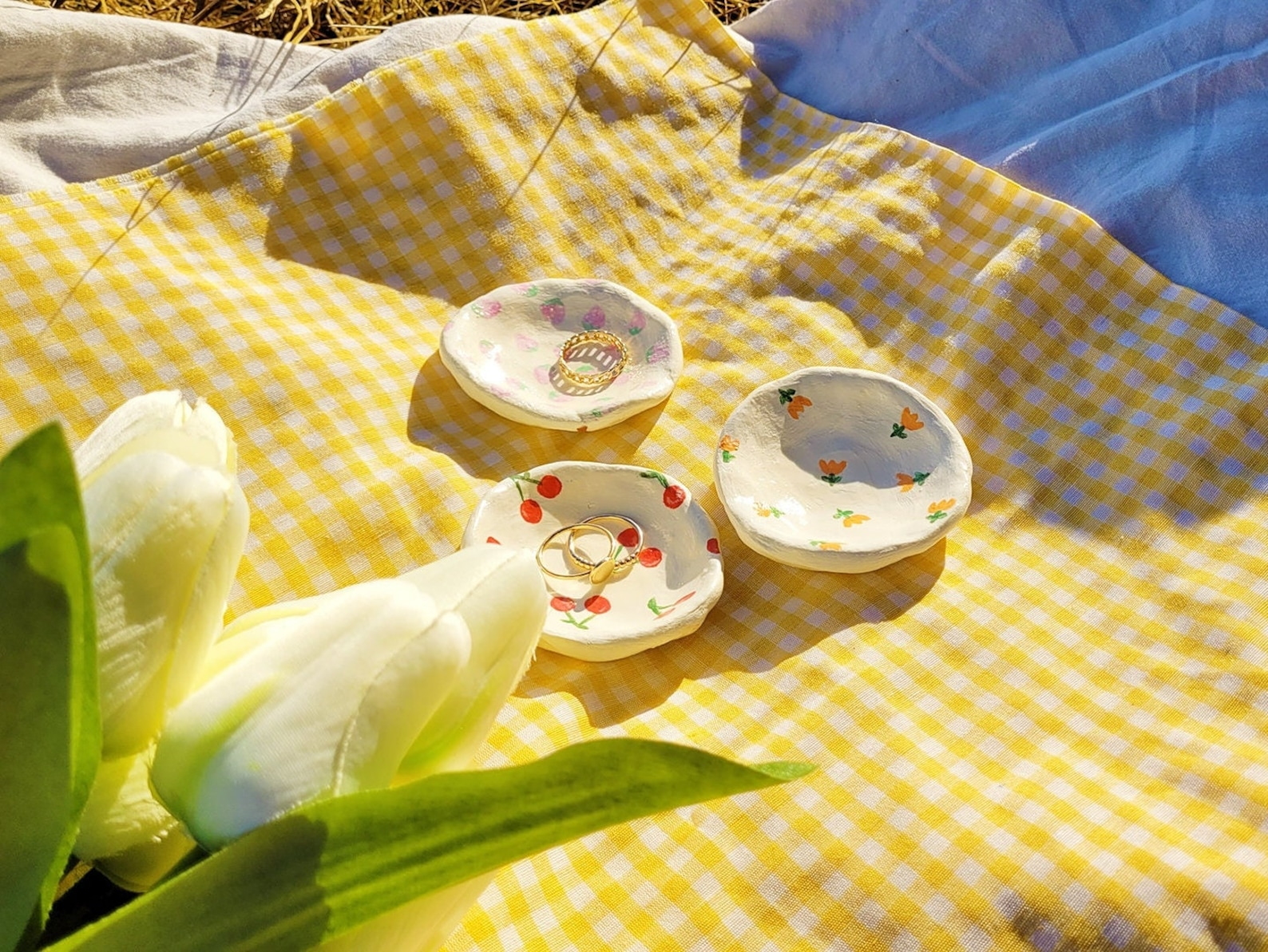 Strawberry Small Clay Cherry Tulip plate - Small ring dish , Cute Ceramic jewelry dish , painted rock