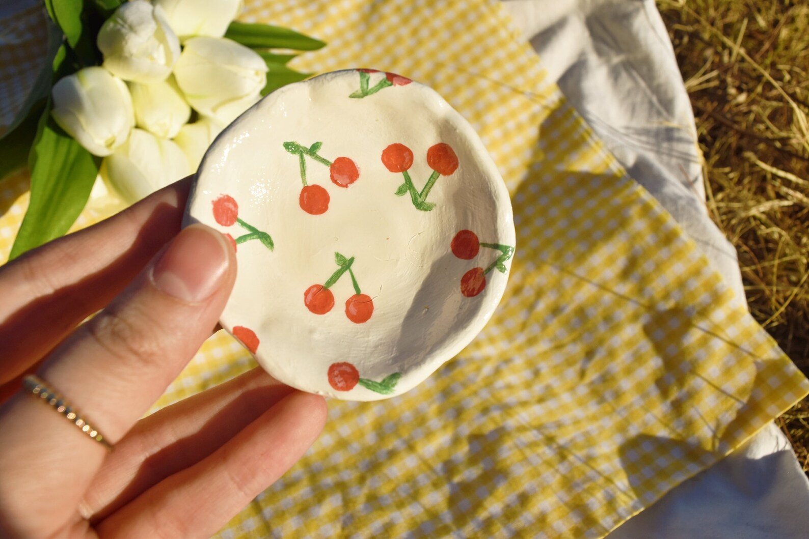 price for 1 piece - Hand painted ceramic cherry / strawberry / tulip dish plate/tray cute style made with clay %100 HANDMADE