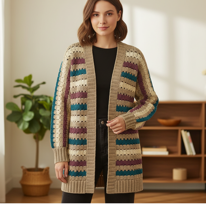 Striped Cardigan Crochet Pattern PDF