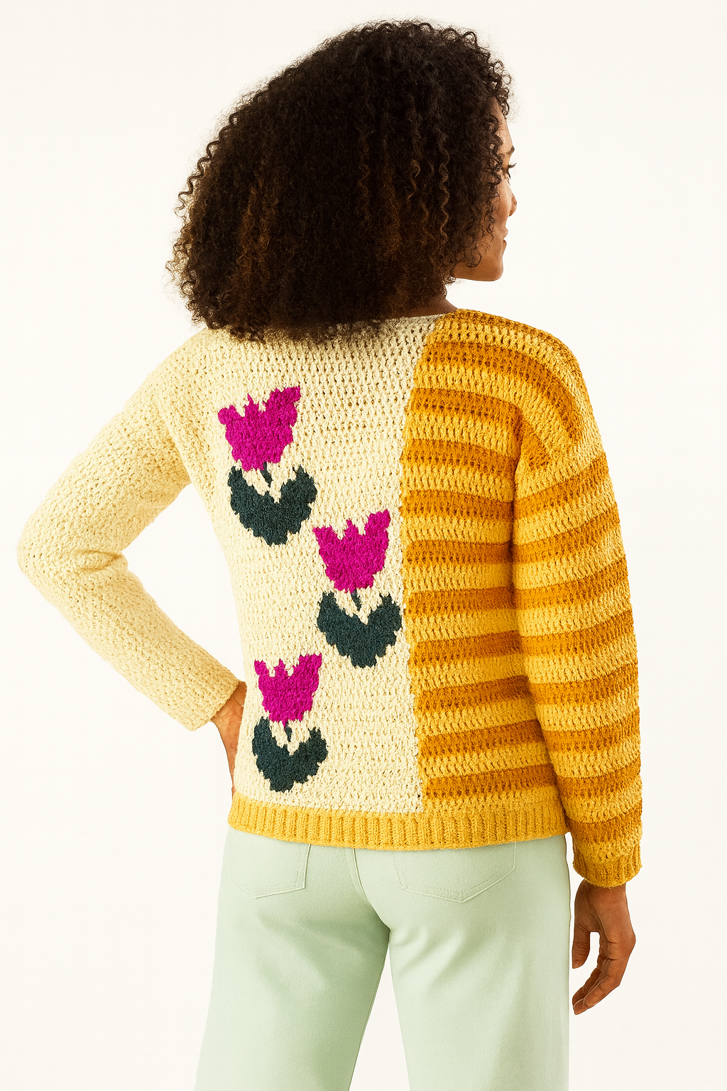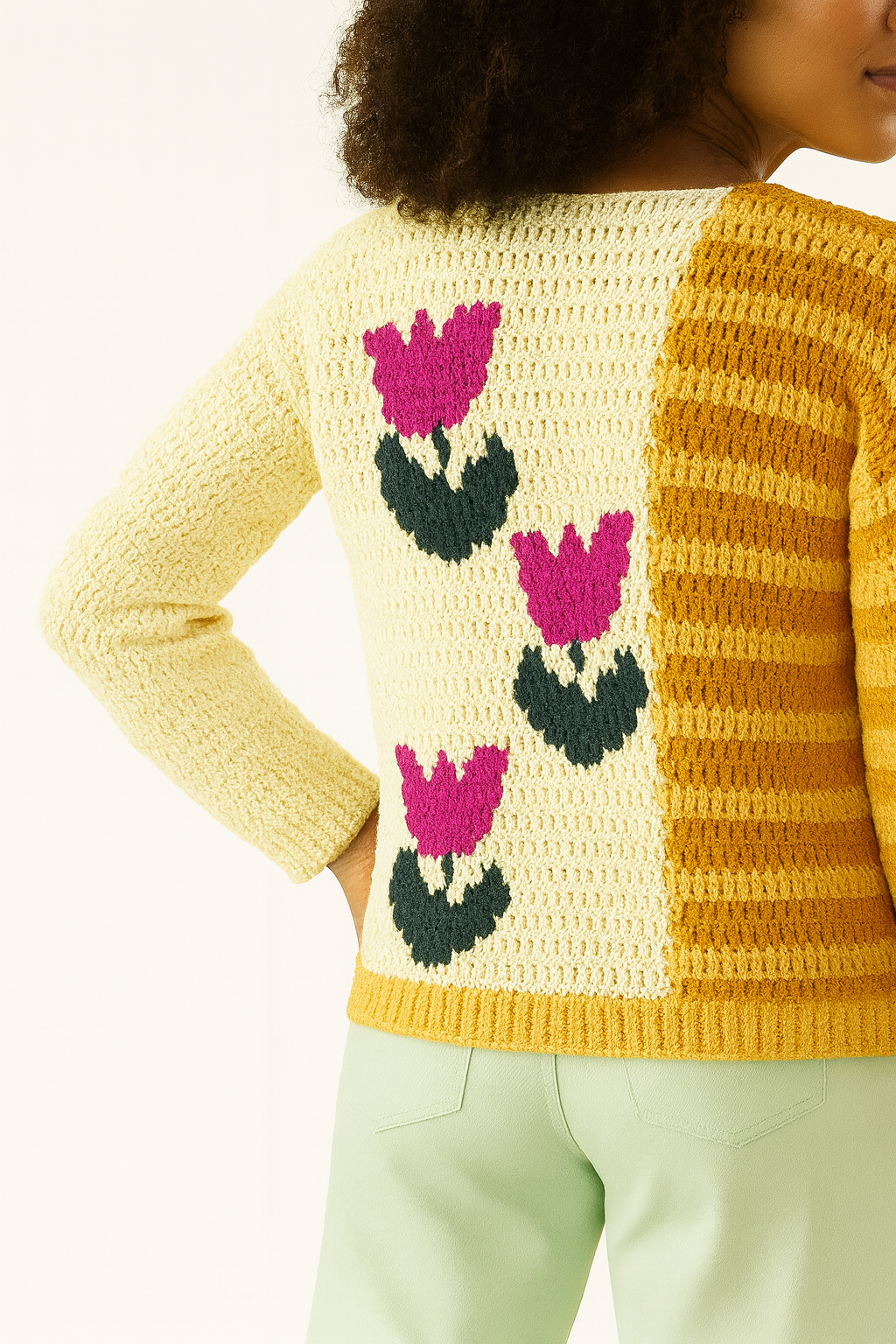With the Tulips in Bloom Sweater Crochet Pattern, you’ll be able to: